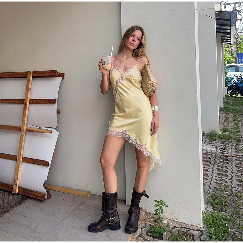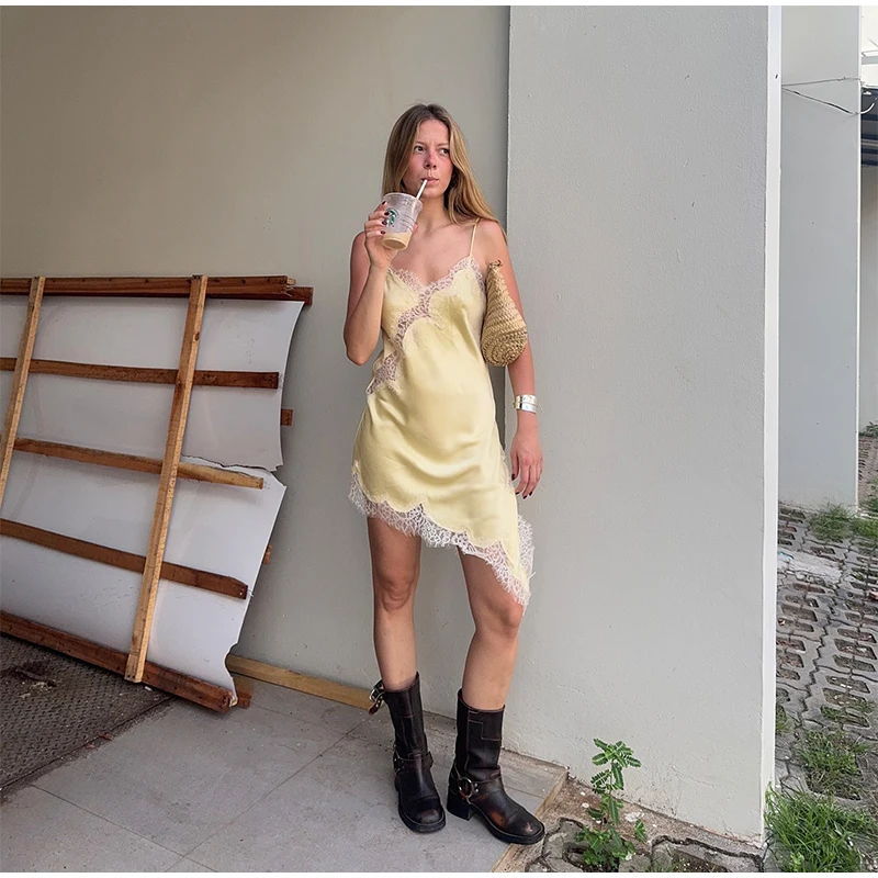 Sexy Solid Sling Lace Dress